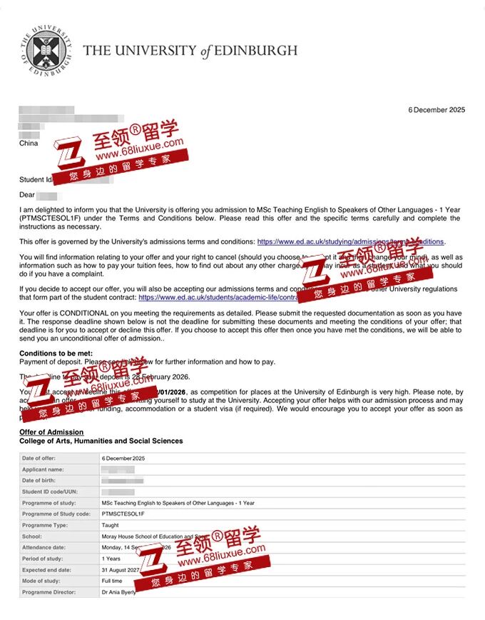 爱丁堡大学,TESOL硕士录取