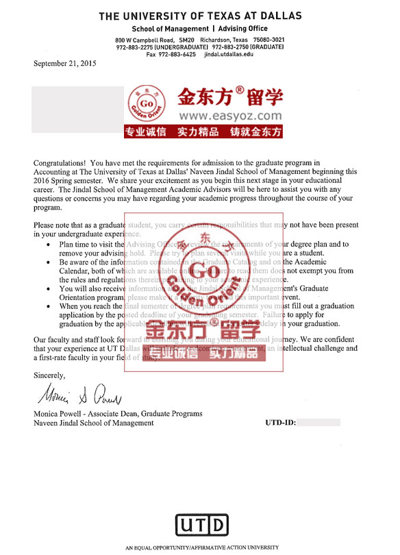 录取结果:德克萨斯大学达拉斯分校会计硕士
